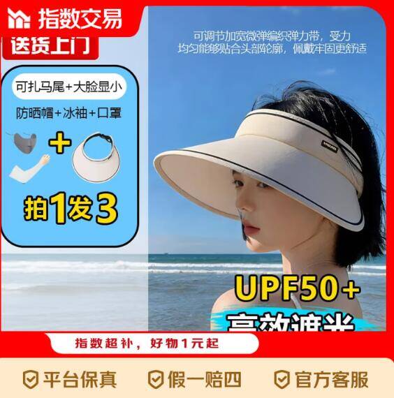 夏季防晒三件套:防晒帽+冰袖+口罩,到手价仅需4.68元