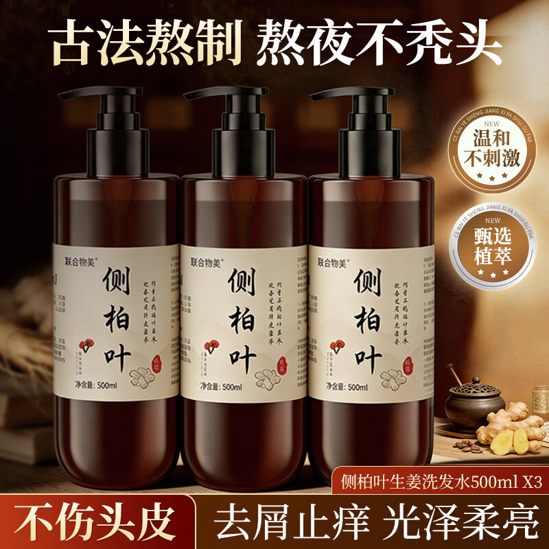 联合物美侧柏叶洗发水500ml*3瓶,到手价仅需55.9元