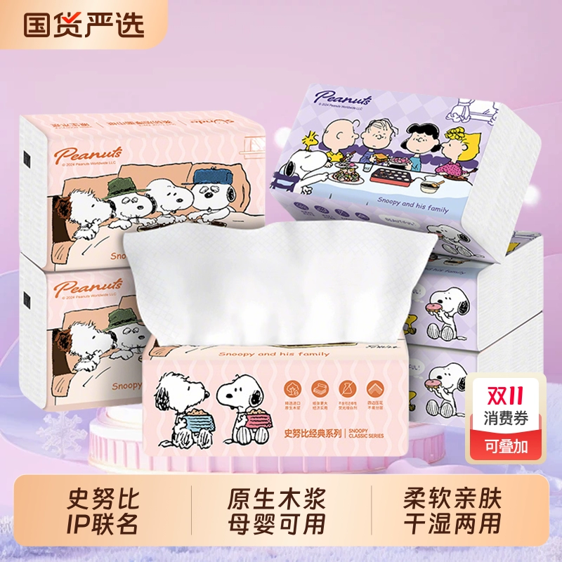 ¥6.3 史努比正版混色抽纸90抽*8包 13.3