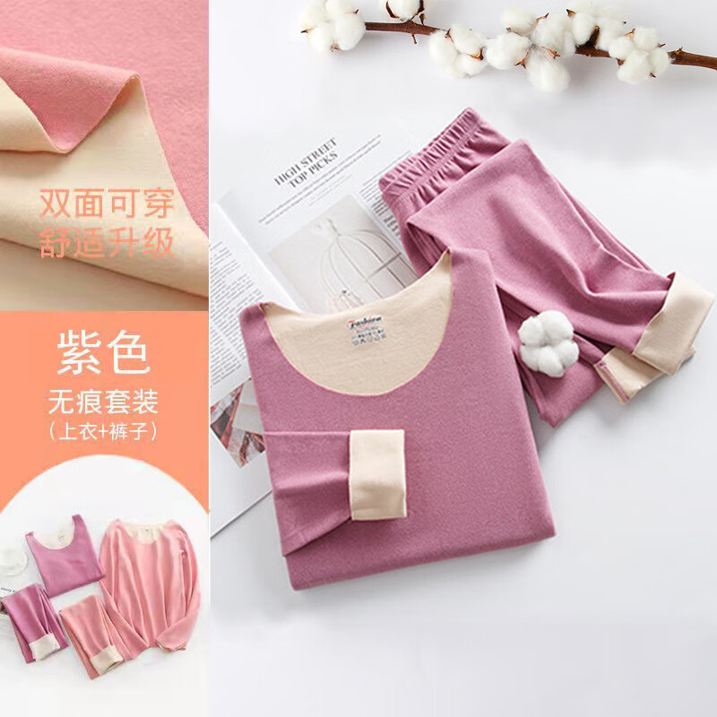¥59.3 诗莉奥(SHILIAO)女士无痕保暖内衣套装德AB面双面绒磨毛男秋衣秋裤女保暖衣 AB面浅紫无痕 女款 3XL 59.8
