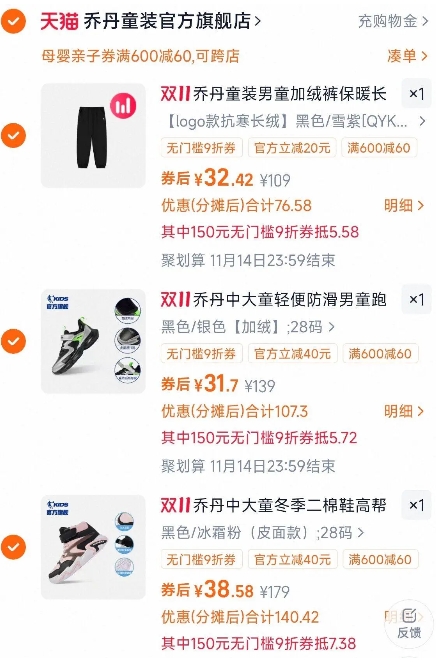 3款乔丹鞋子都需要从主图右上角三个点-淘金帀-里面找到后加购,叠凑单一起付款,都是低价~