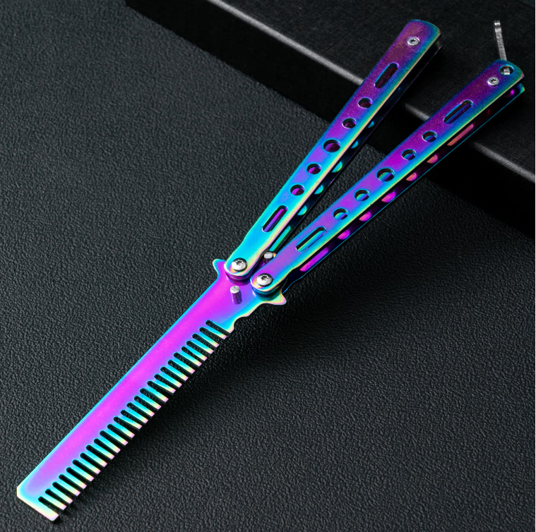 ¥10.9 光士刃蝴蝶梳子蝴蝶折叠刀未开刃csgo周边不锈钢甩手练习初学者训练小刀 金梳 【全金属材质】单把梳 15.9