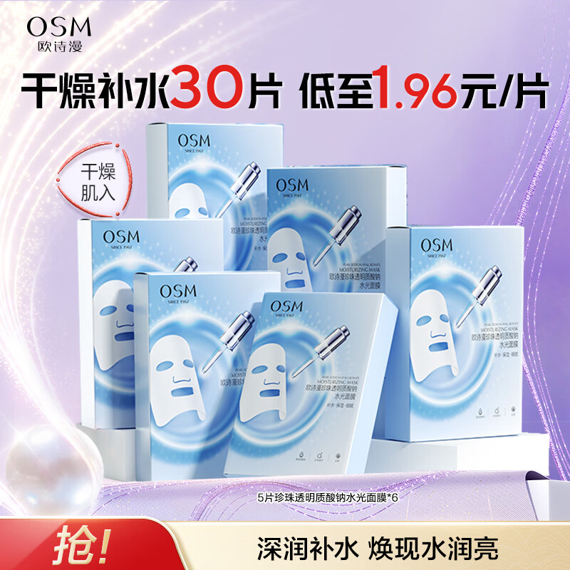 ¥33 欧诗漫(OSM)珍珠透明质酸钠水光补水面膜保湿滋润贴片面膜【专享】 水光面膜30片 59