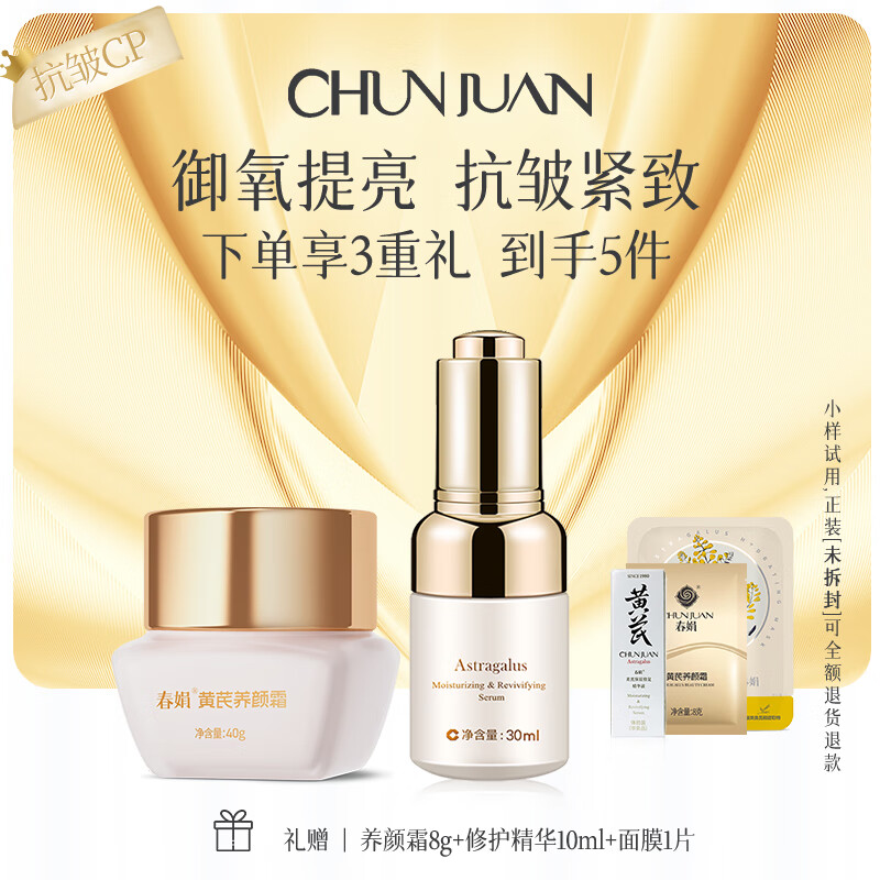 ¥228 春娟黄芪御氧修护提亮2件套装补水保湿滋润护肤[节日礼物送女友长辈] 养颜霜40g+精华30ml(抗皱紧致) 248