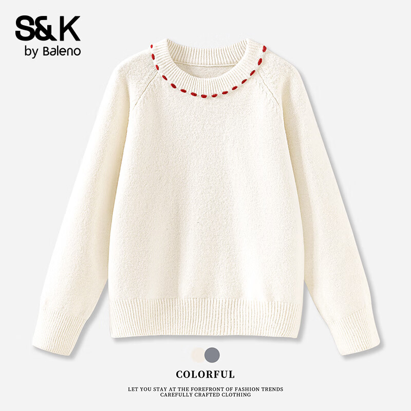 ¥108.9 班尼路(Baleno)S&K系列毛衣女针织衫女装秋冬季圆领撞色设计宽松长袖保暖上衣服 杏#纯色 L 129.9