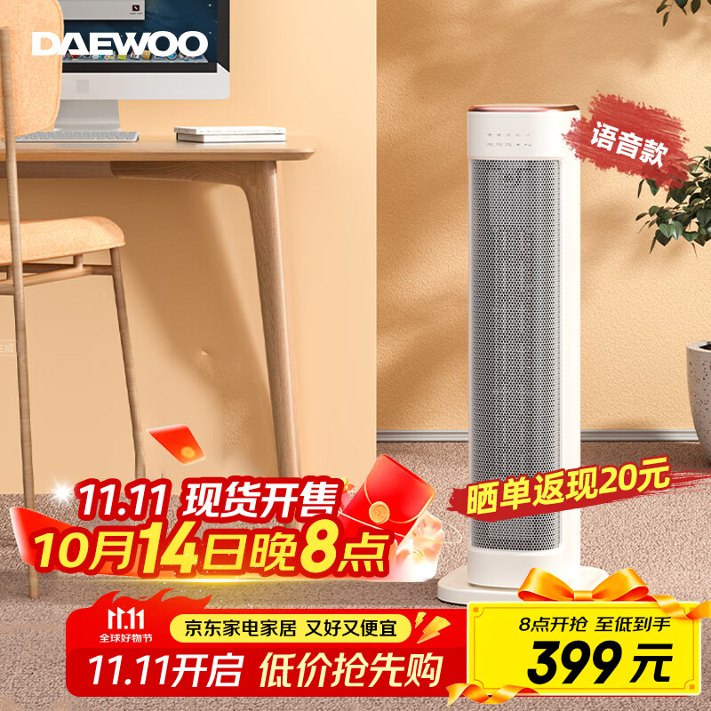 ¥418 大宇卧室客厅暖风机家用电暖器速热立式电暖风智能遥控冷暖两用热风机 K6pro速热暖 K6pro语音款 499