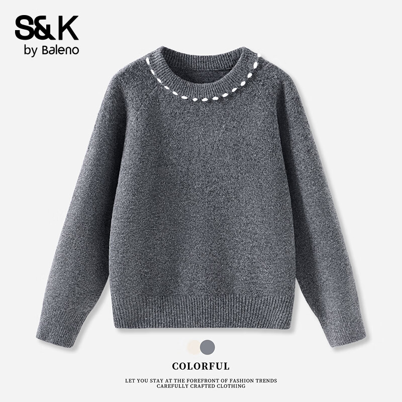 ¥108.9 班尼路(Baleno)S&K系列毛衣女针织衫女装秋冬季圆领撞色设计宽松长袖保暖上衣服 深灰#纯色 L 129.9