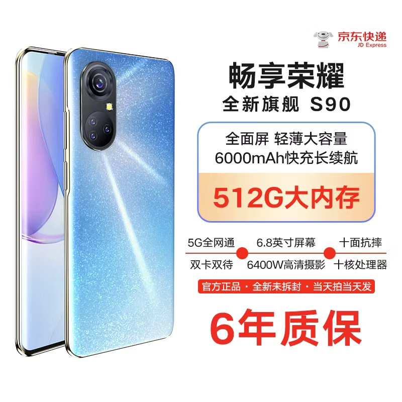 ¥1199 畅享荣耀S90全面屏手机6年质保5G全网通512GB超大内存超高性能6000mAh快充大电池电竞抗摔防水护眼高性能 星空蓝 8GB+256GB 1499