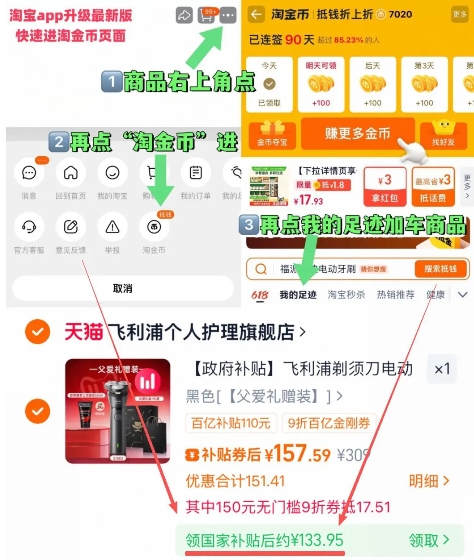 在售价309元,商品页右上角三个点点进去-底部淘金币点进去-淘金币页面加购,用金刚劵+叠消费劵,国补后付133元包邮;