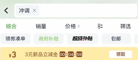 1.手淘-猫超搜:冲调 部分有3元品类金