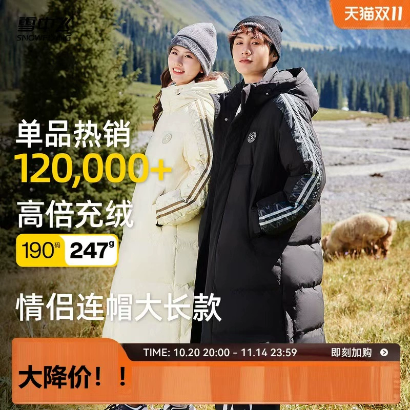 ¥329 礼金!雪中飞户外长款情侣羽绒服 329