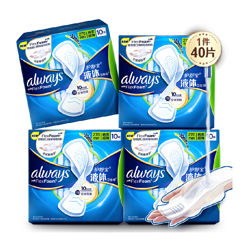 ¥129.9 护舒宝液体卫生巾270mm40片 129.9