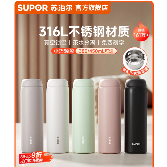¥39.9 【苏泊尔】高颜值316L保温杯380mL 79.9