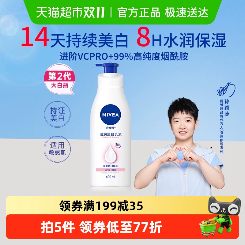 ¥20.9 妮维雅2代大白瓶美白身体乳精华烟酰胺保湿补水 25.9