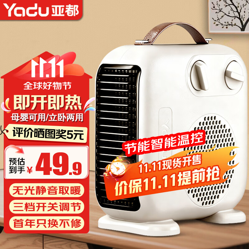 ¥39.9 亚都(YADU)取暖器/暖风机/电暖器/电暖气/台式暖风机 /家用立卧两用速热电暖炉 升级双温控款 43.9