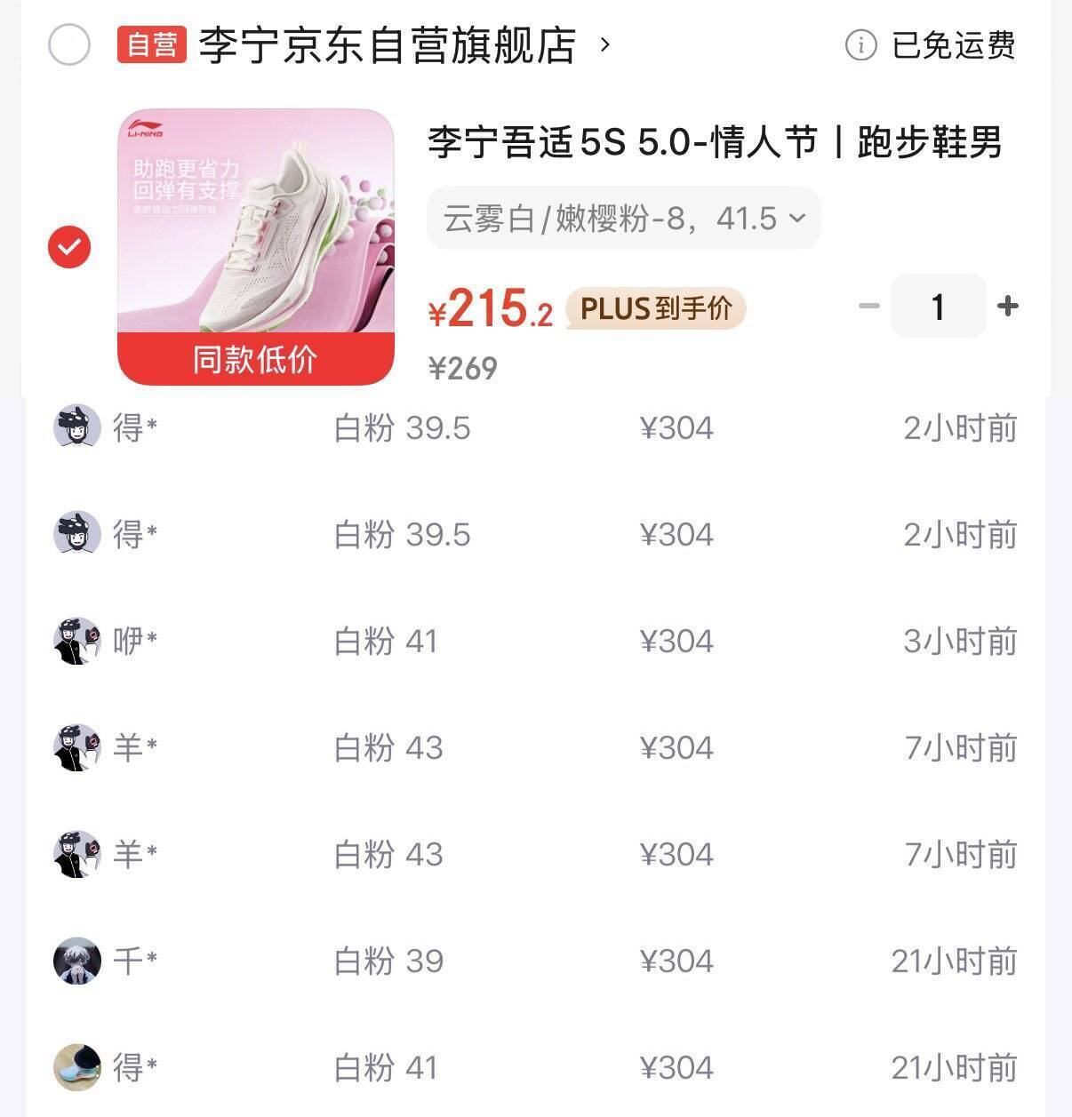 李宁吾适5.0粉色鞋Plus会员到手仅215元