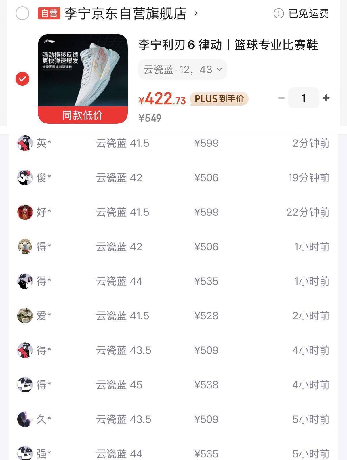 李宁利刃6 Plus运动鞋仅需422元,得物售价529元