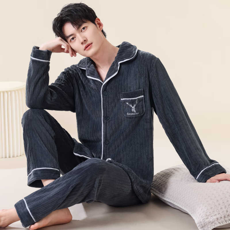 ¥59.9 雪中飞珊瑚绒睡衣男士秋冬季加绒加厚2025新款法兰绒家居服套装大码保暖 NSCJF-灰色抽条小鹿 XL 【宽松版型建议135-155斤】 89.9