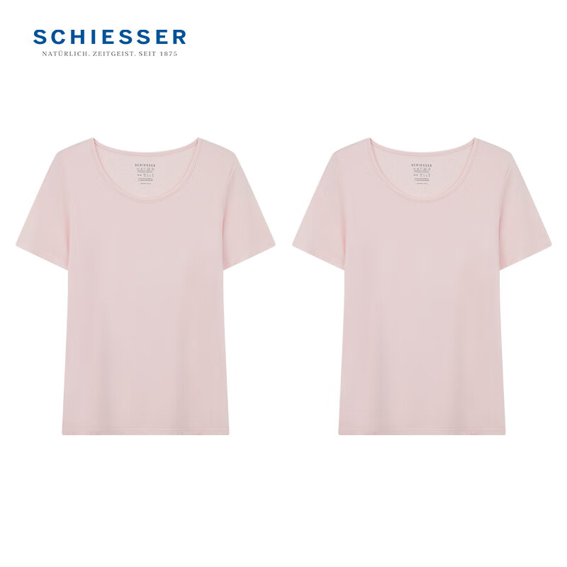 ¥127.2 舒雅(Schiesser)女士莫代尔圆领打底短袖睡衣上装【同色2件装】E0/19962M 浅粉色 XL 159