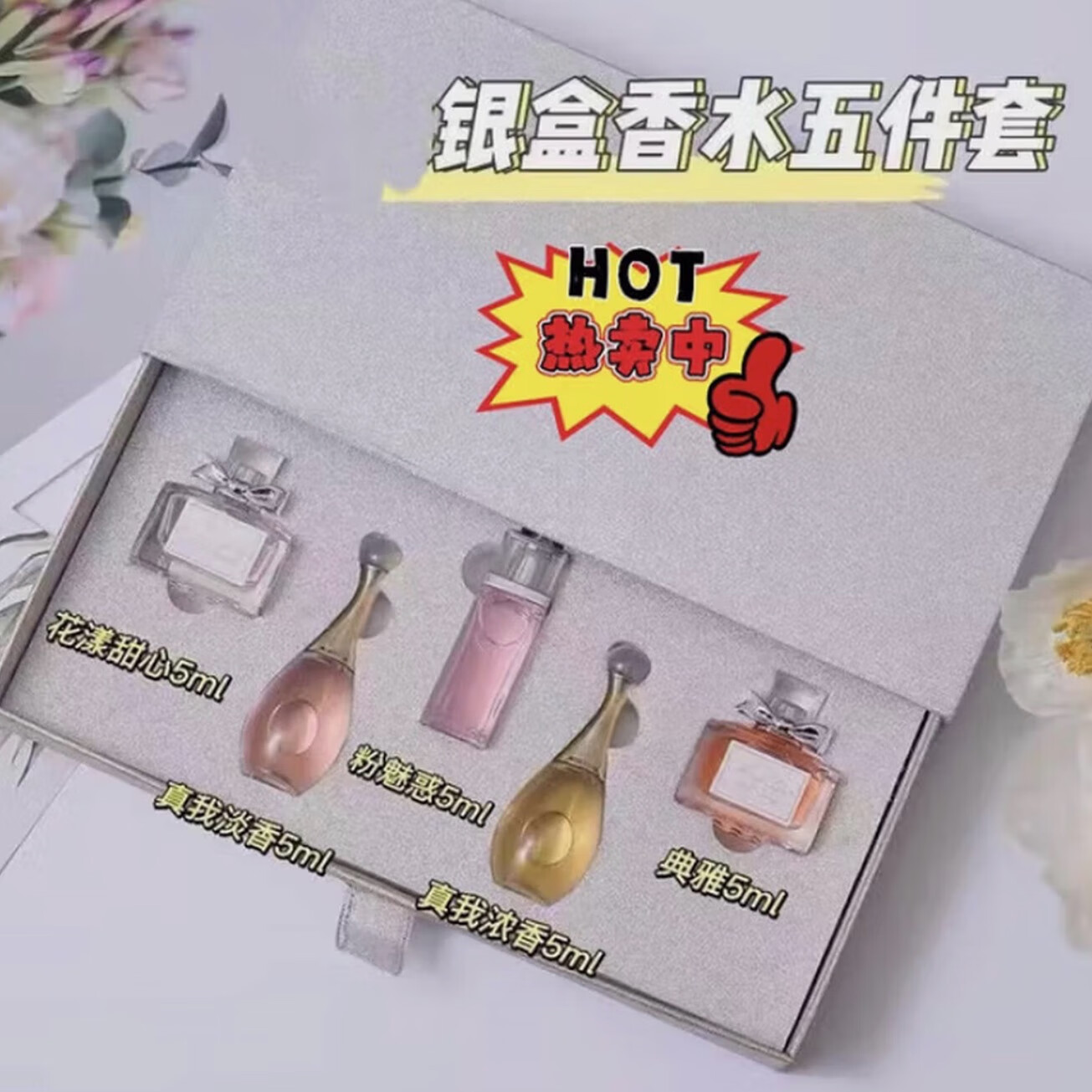 ¥83.88 Di家Q版香水小样试装专柜礼盒情人节礼物送女友送闺蜜香水+礼袋 银盒五件套【专柜礼袋】 93.88