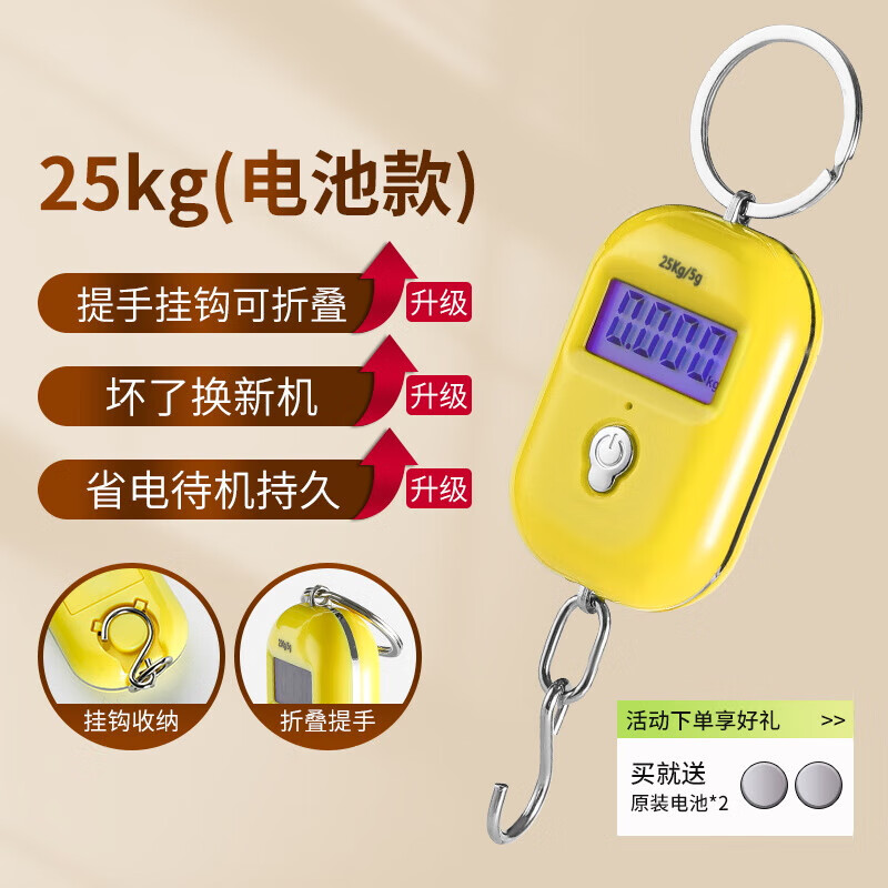 ¥30.9 精准迷你手提电子秤高精度便携式小型弹簧秤吊秤家用买菜随身小秤 活力黄+电池*2 60.9