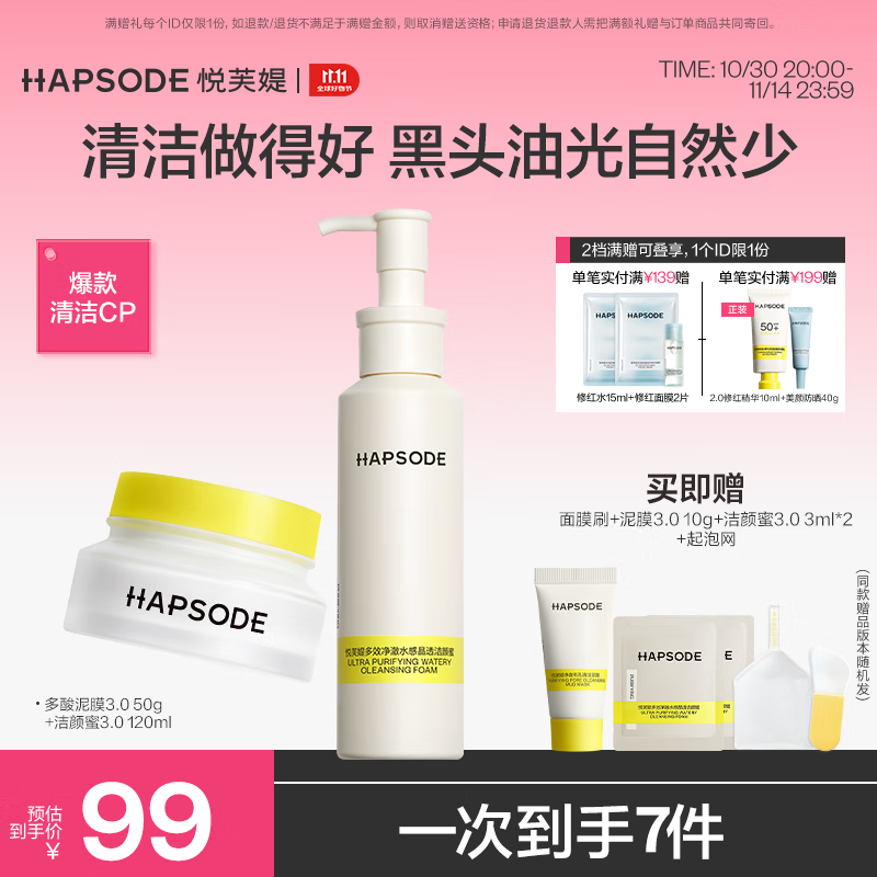 ¥104 悦芙媞多酸泥膜洁颜蜜深度清洁去黑头白头氨基酸洁面面膜学生礼物 洁颜蜜120ml+泥膜50g 109