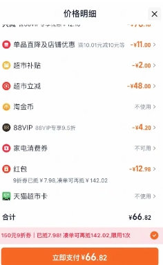 活动售价145元,领取10元券(猫超首页搜“奇莫”进入奇莫品牌馆之后入会领取10券)参与立减48元,超市补贴2,买1件返5元天猫超市卡优惠活动,下单1件,88会员95折,品牌新客立减6,叠9折消费券,猫超搜奇莫领取5品牌金猫超卡抵扣形式图2,实付低至66.82-5-5=56.82元。(复制商品标题,去淘金币频道搜索标题!!!!才可以包邮并且补贴2再-1.45淘金币抵扣)也可拍2。