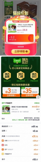 在售价49.9元,领3.99元礼金,下拉详情页领3元品类金-再进入超级补贴加购,叠vip+3元品类金,实付18.17元包邮;