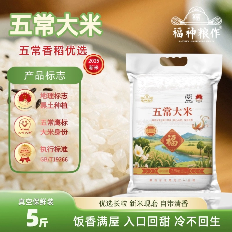 ¥18.9 福神粮作五常大米5斤真空装优质新米长粒 18.9
