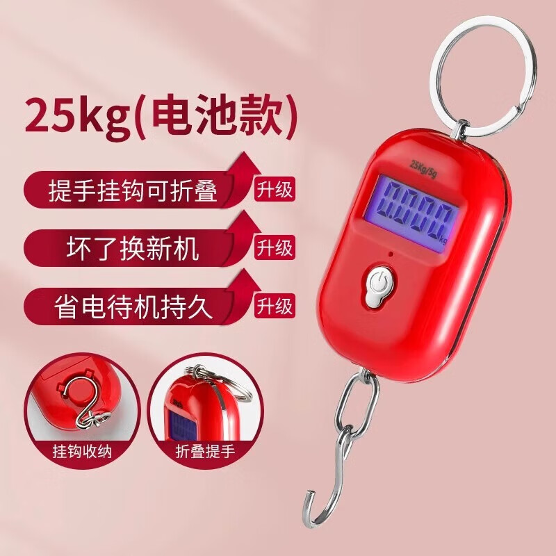 ¥29.9 旅游行李秤手提电子秤迷你小型便携式高精度手称小秤快递弹簧磅秤 玫瑰红25kg带电池 59.9
