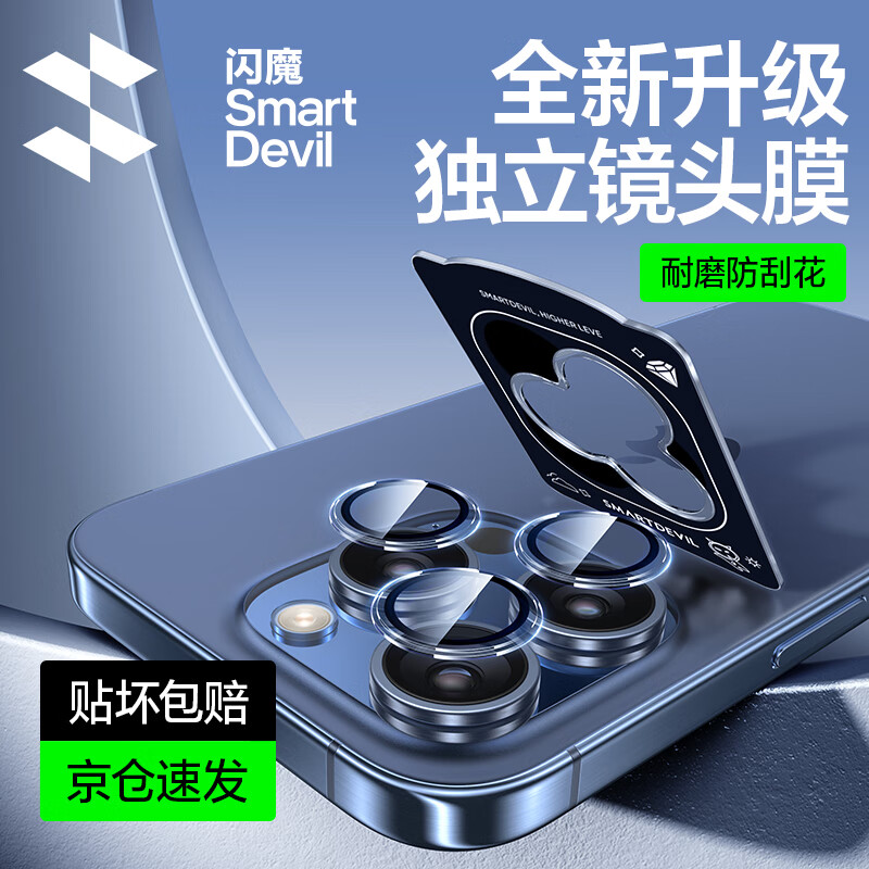 ¥47.9 闪魔【好物优选】适用于苹果15Promax镜头膜【自定位秒贴】三摄独立丨 1套装【自定位秒贴】 15Pro/15Promax 77.9