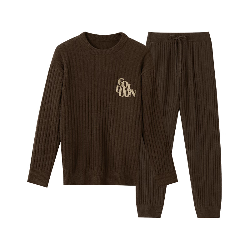 ¥64 金利来男士睡衣男女秋冬加绒加厚家居服情侣长袖长裤宽松休闲可外穿套装 男-豆蔻棕 XL 199