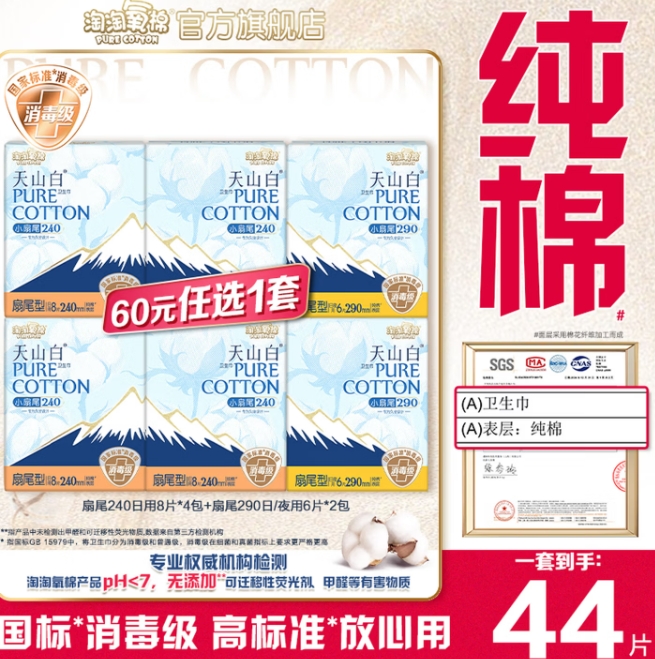 27元包邮!淘淘氧棉消毒级卫生巾6包