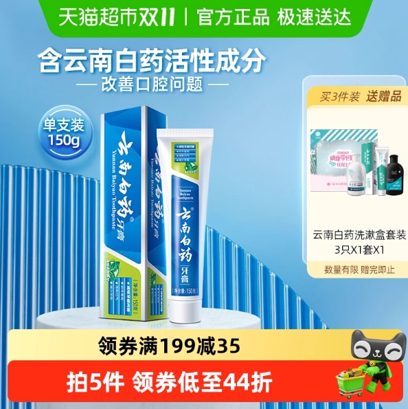 折13元/支!云南白药牙膏150g超大支+送洗漱3件套