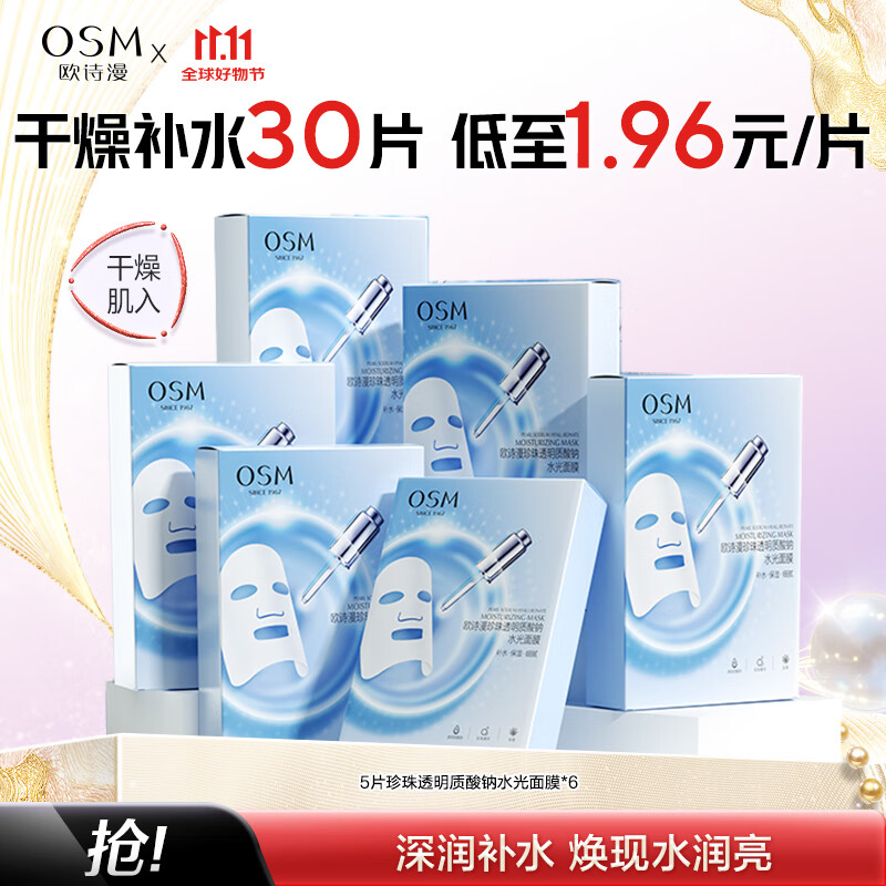 ¥33 欧诗漫(OSM)珍珠透明质酸钠水光补水面膜保湿滋润贴片面膜【专享】 水光面膜30片 59