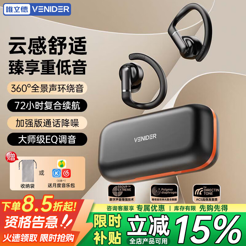 ¥6 唯立德蓝牙耳机挂耳式运动跑步真无线入耳式音乐骑行舒适佩戴超长续航通话降噪防水S08黑 银河黑 | 沉浸音质 | 高清通话 99