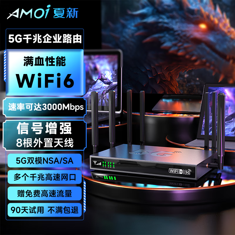 ¥639 夏新5g随身wifi移动无线免插卡cpe路由器千兆双频信号增强企业穿墙王2025款无限流量免装宽带电竞办公 【5G顶配版】0延迟,畅享网络 689