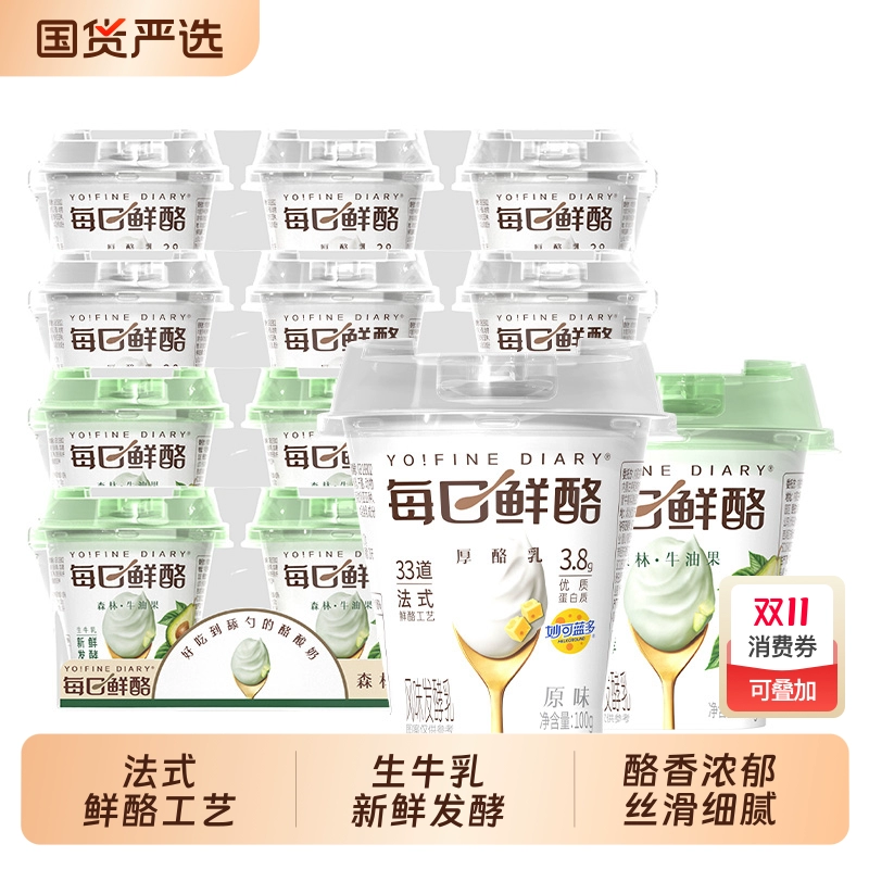 ¥19 每日鲜酪低温酸奶原味牛油果混合口味6+6 37