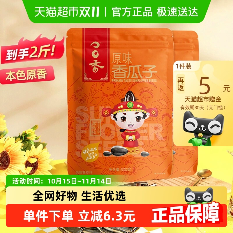 ¥21.52 【88vip实际12.68】洽洽原香葵花籽500g*2袋 22.52