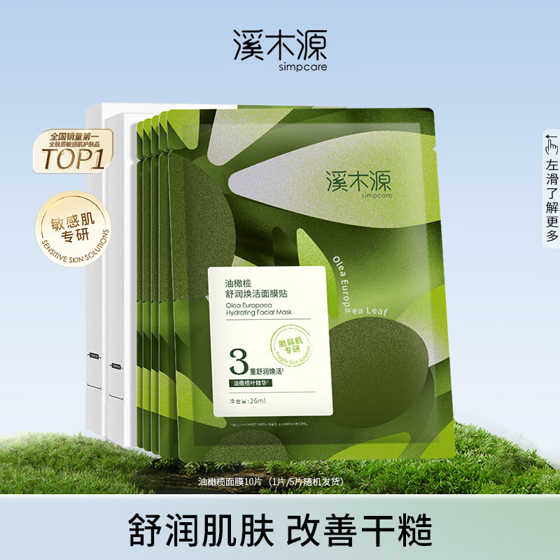 ¥70 溪木源油橄榄舒润肌肤面膜改善干燥面膜贴送男女礼物 油橄榄面膜10片 210