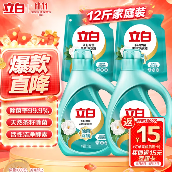 20.12元!立白 天然茶籽除菌洗衣液 12斤