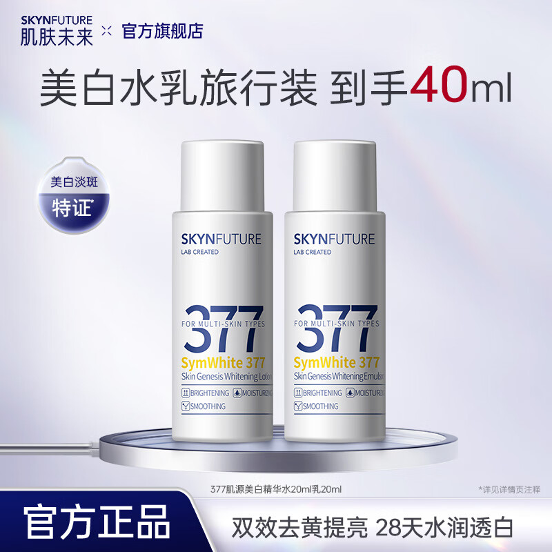 ¥29.9 肌肤未来377美白面霜提亮改善暗沉肤色补水淡斑学生男女护肤品 水乳20ml+20ml 69.9