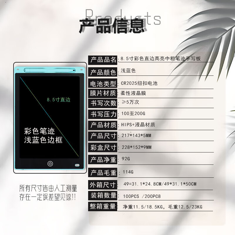 ¥17.9 2024新品6585101216英寸液晶儿童手写画板涂鸦写字玩具礼品 8.5英寸直边横孔浅蓝色(彩色笔迹 47.9