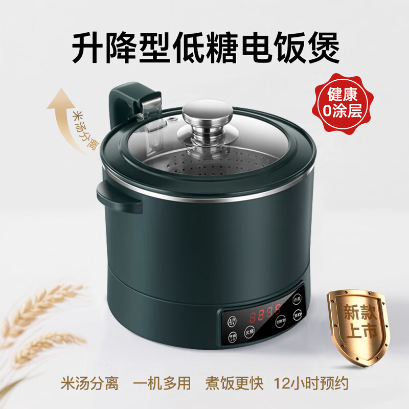 ¥299 统厨智能升降低糖电饭煲米汤分离全自动沥米饭蒸煮多功能电饭锅 3L 墨绿色 不锈钢款(适合2-3人) 侧边升降 329