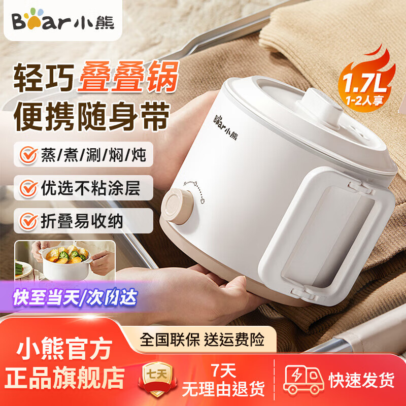 ¥89 小熊(Bear)多功能锅电煮锅电火锅电蒸锅蒸煮涮焖炖可折叠差旅便携小锅宿舍泡面锅不粘锅 1.7L 【升级送蒸笼】DRG-K17U6 99