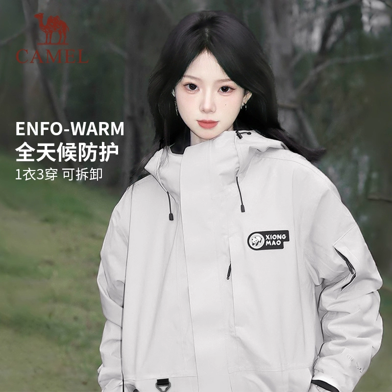 ¥459 骆驼熊猫灰色冲锋衣男女款三合一防风防水 738