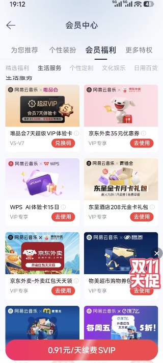 2、网易云会员送网易云会员领唯品会会员