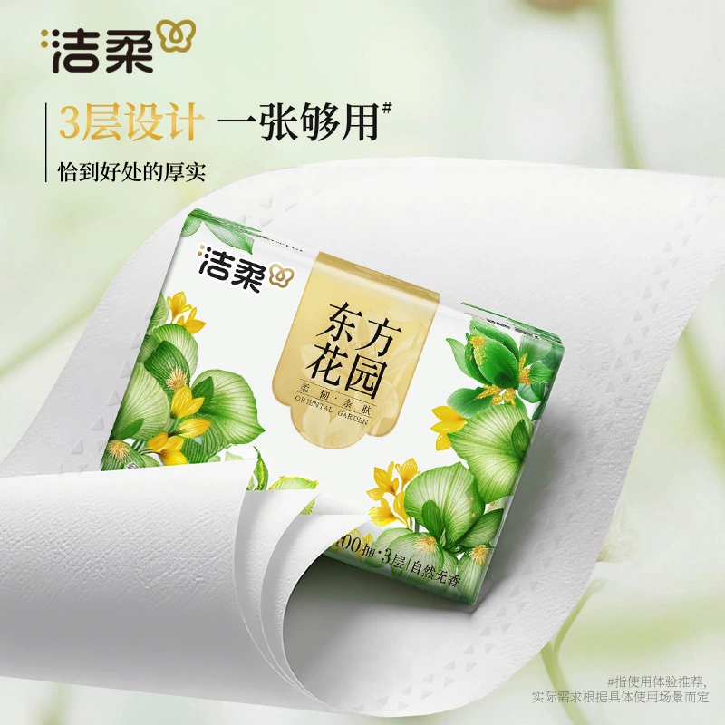 ¥14.3 洁柔纸巾抽纸东方花园3层100抽20包 16.3