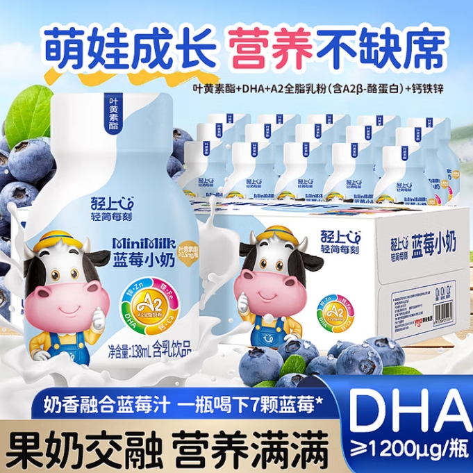 16.9元包邮!轻上·蓝莓小奶10瓶