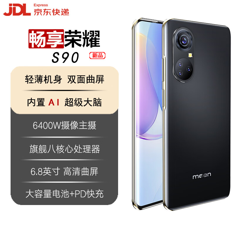 ¥1398 畅享荣耀S90 [白条免息] 双曲屏智能AI手机2025新款5G双卡全网通轻薄大容量电池PD快充长续航抗摔防水 炫酷黑 12G运存+512G内存-热卖款 1698
